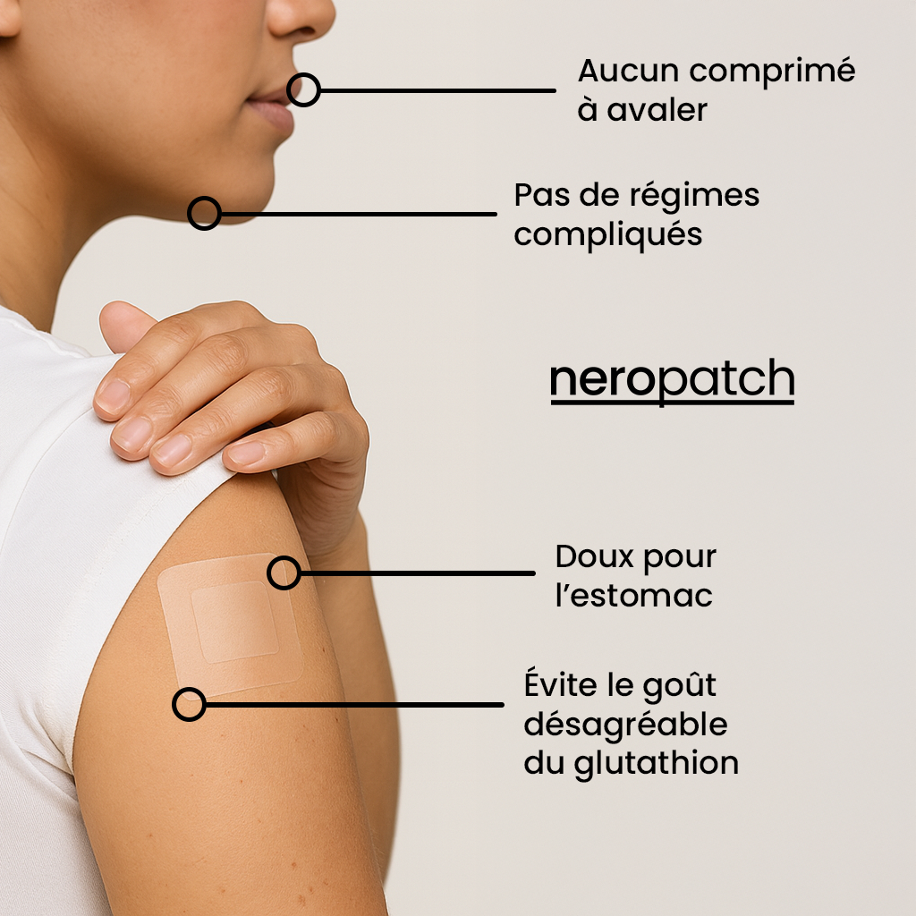 Notre patch délivre les nutriments à travers la peau — doux pour la digestion, sans préparation quotidienne.